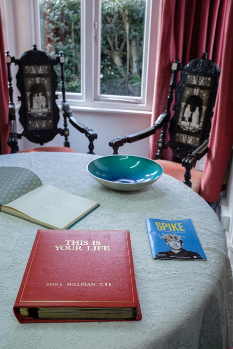 The highlights of the day involved Spike Milligan’s daughters, Jane and Silé. They conducted us on a tour of the lodge building at Stephens House, which is becoming the nerve centre of Spike Milligan Productions Ltd, and housing a developing archive of Spike’s belongings. Some day in the future it will be open to visitors. We all took the opportunity to visit the Spike Milligan memorial bench, which is just a few paces away.