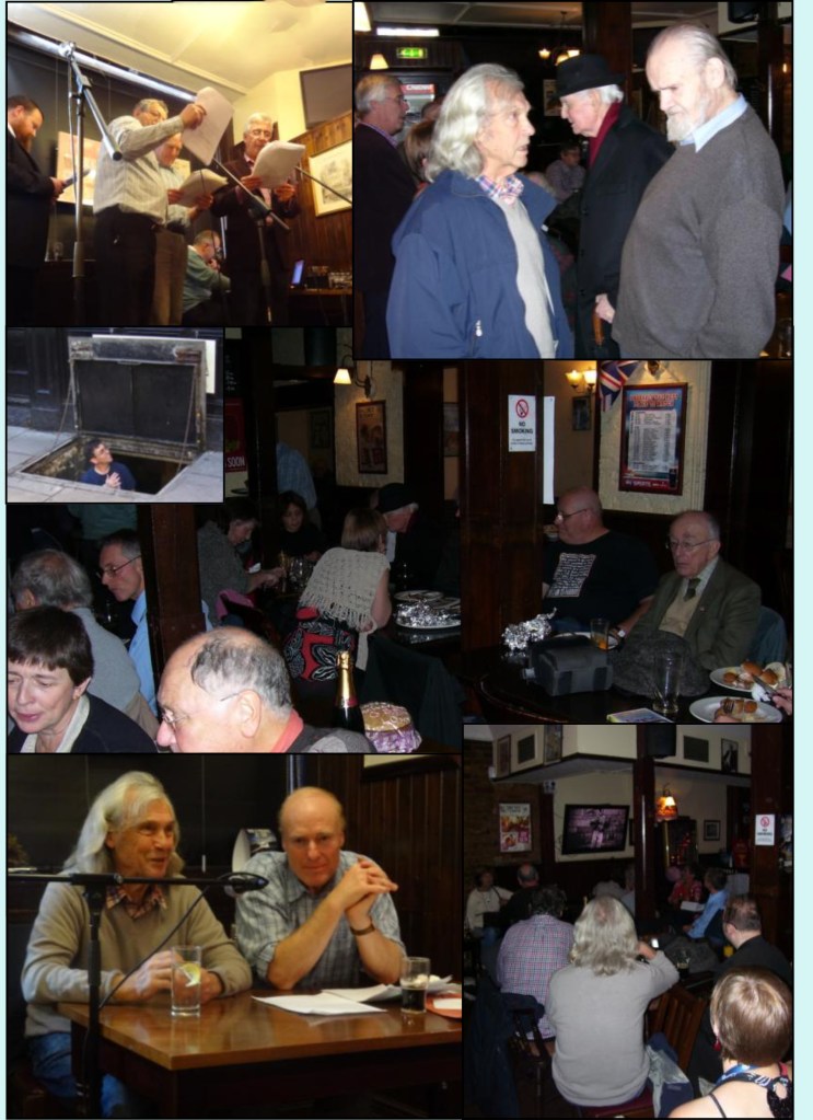 The interview with John Antrobus whisked us back to his roots and lured us into the worlds of The Goon Show, Idiot Weekly – Price 2d, the Freds, The Army Game and The Bed-sitting Room. Some of it was serrated by a remarkably frank appraisal of the demon drink, and the time-travelling and name-dropping could have gone on and on and on. But it did run for nearly an hour and a half, and people had their hurdy-gurdies to ride home, dogs were waiting to be watered and mother-in-laws to be strangled. There was just time to confer on John an Honorary Vice-Presidentship of our illustrious organization. The interview transcript will be coming to a Newsletter near you in a few full moons’ time.