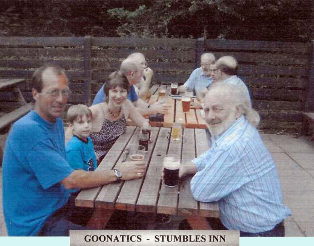 Introductions – several Johns including John Dudley who I discovered lives in Braunton – Nigel Bush from Exeter (sort of via Glastonbury Festival) – total so far – three from Devon. Sussex Mob and the Long Tall Texan made up the rest of the table. Outside for quick tobacco break with Paul Downs, and chat about newsletter printing costs . . . threatened with excommunication by Paul who was refusing to give change from a proffered ten shilling note other than a photocopy of a five shilling postal order . . . Devon Gang slightly outnumbered, so Nigel and I retreated to the safety of Stumbles Bar – only had one, but still managed to be late for the start of Sussex Mob’s “This is Your Life, Mate“