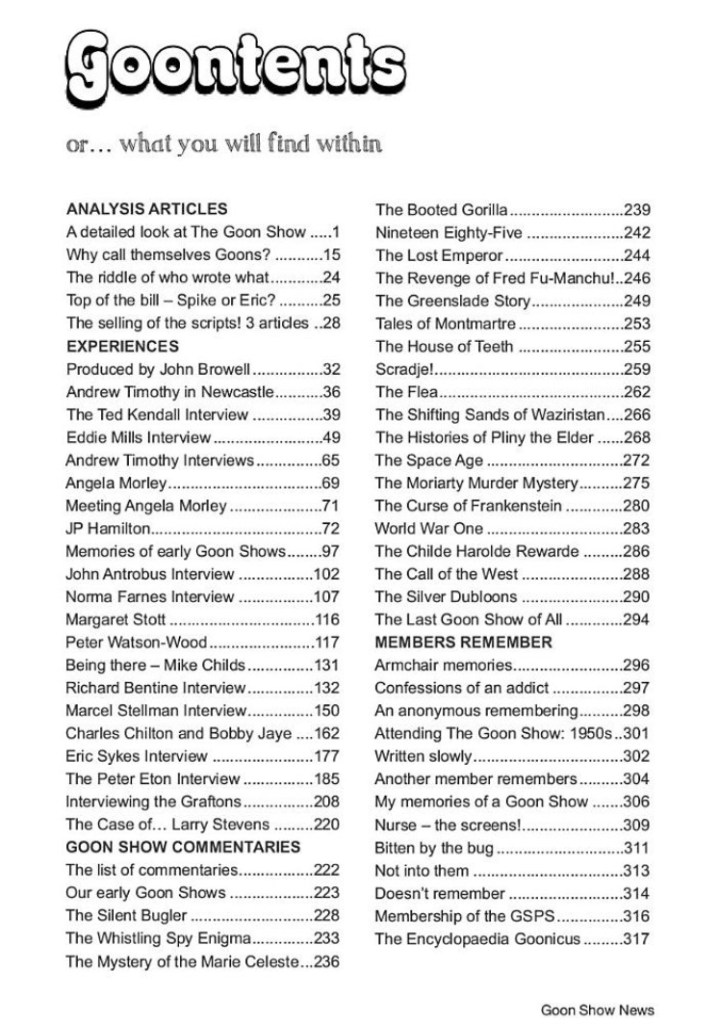 There’s a new volume available to grace your bookshelves. A team at the Goon Show Preservation Society has dug deeply into the newsletter archives and chosen a selection of articles to present in the form of this book.